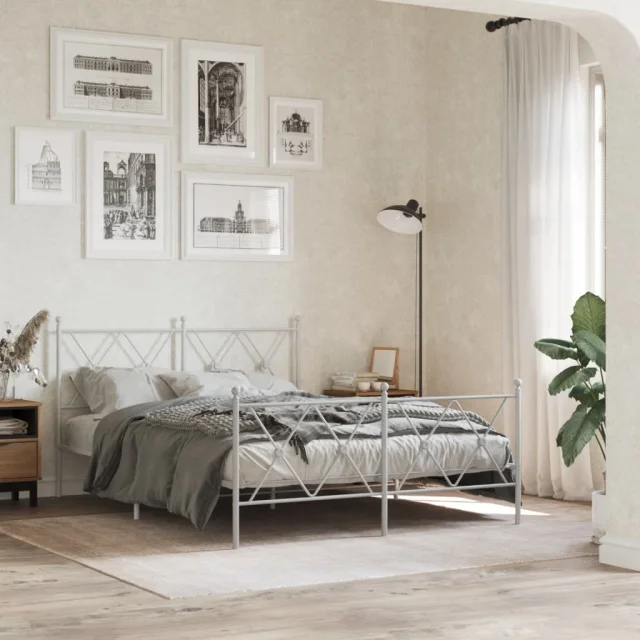 Kovinski Posteljni okvir - Dvoposteljna postelja - Zakonska postelja z vzglavjem in vznožjem bel 137x190 cm