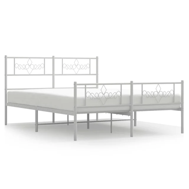 Kovinski Posteljni okvir - Dvoposteljna postelja - Zakonska postelja z vzglavjem in vznožjem bel 140x190 cm