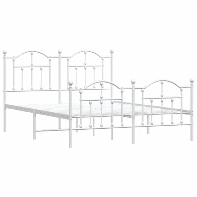 Kovinski Posteljni okvir - Dvoposteljna postelja - Zakonska postelja z vzglavjem in vznožjem bel 140x200 cm