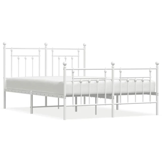 Kovinski Posteljni okvir - Dvoposteljna postelja - Zakonska postelja z vzglavjem in vznožjem bel 140x200 cm