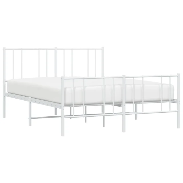 Kovinski Posteljni okvir - Dvoposteljna postelja - Zakonska postelja z vzglavjem in vznožjem bel 140x200 cm