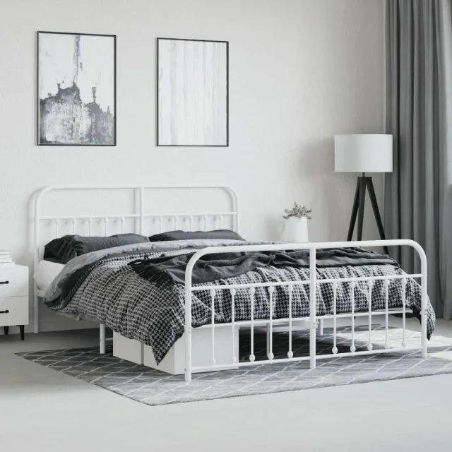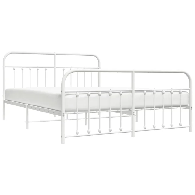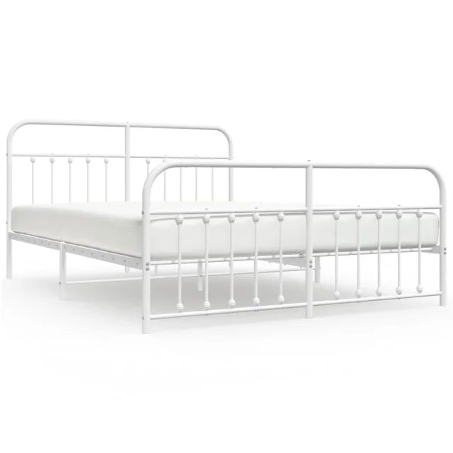 Kovinski Posteljni okvir - Dvoposteljna postelja - Zakonska postelja z vzglavjem in vznožjem bel 160x200 cm