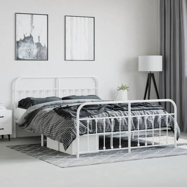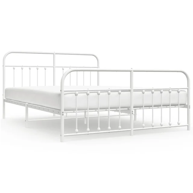 Kovinski Posteljni okvir - Dvoposteljna postelja - Zakonska postelja z vzglavjem in vznožjem bel 183x213 cm
