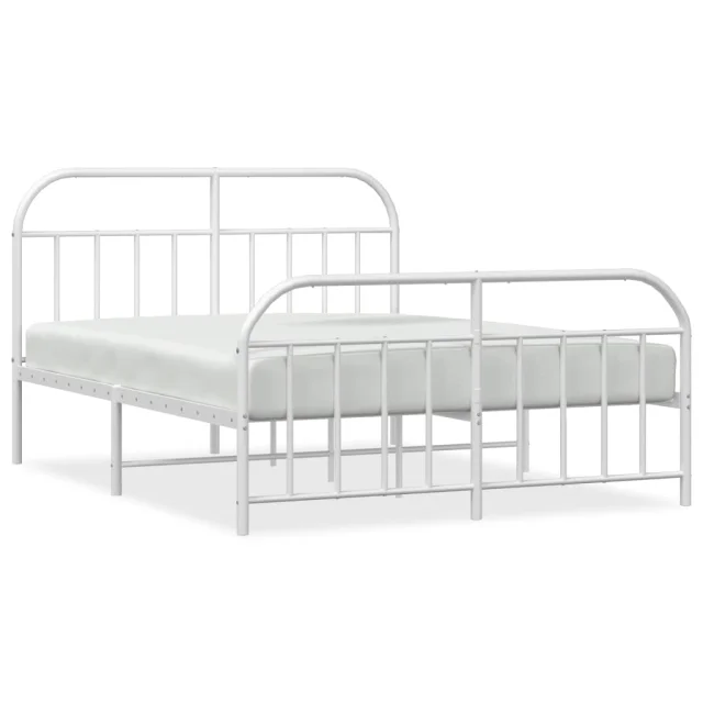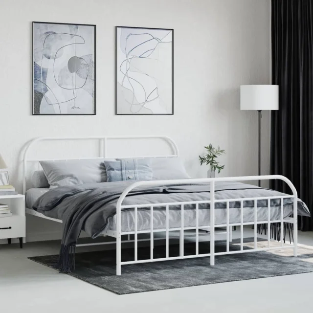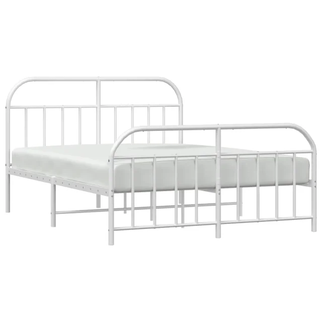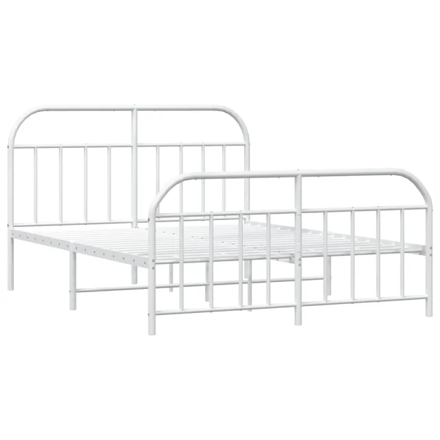 Kovinski Posteljni okvir - Dvoposteljna postelja - Zakonska postelja z vzglavjem in vznožjem bel 183x213 cm