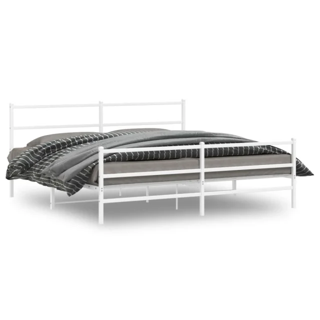 Kovinski Posteljni okvir - Dvoposteljna postelja - Zakonska postelja z vzglavjem in vznožjem bel 183x213 cm