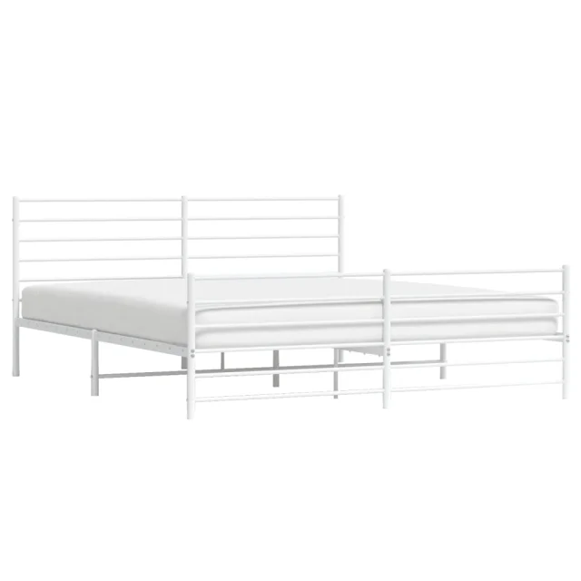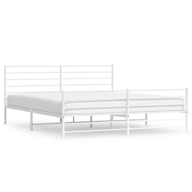Kovinski Posteljni okvir - Dvoposteljna postelja - Zakonska postelja z vzglavjem in vznožjem bel 183x213 cm