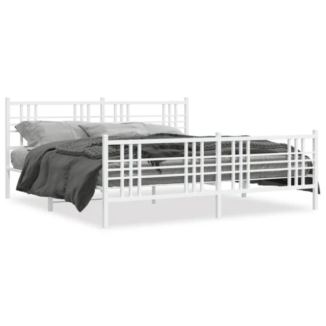 Kovinski Posteljni okvir - Dvoposteljna postelja - Zakonska postelja z vzglavjem in vznožjem bel 183x213 cm