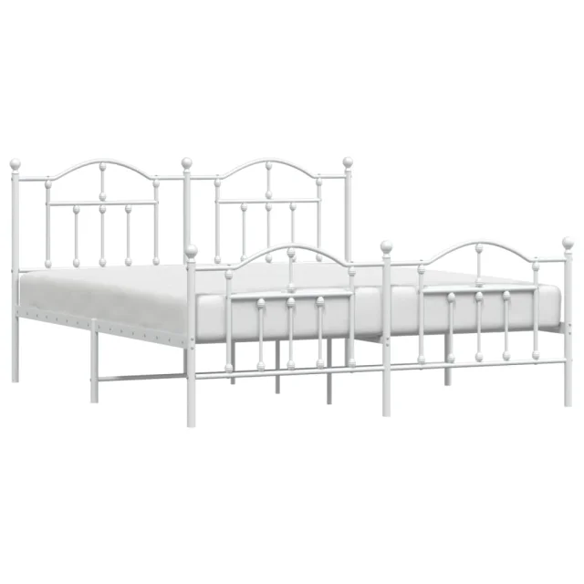 Kovinski Posteljni okvir - Dvoposteljna postelja - Zakonska postelja z vzglavjem in vznožjem bel 183x213 cm