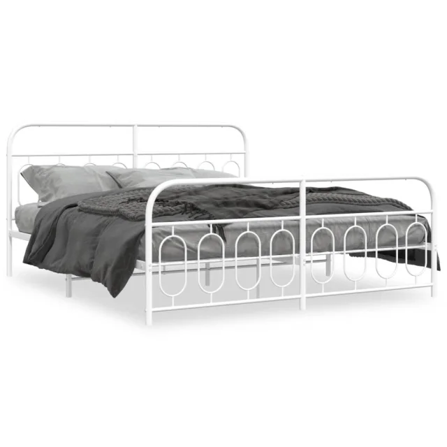 Kovinski Posteljni okvir - Dvoposteljna postelja - Zakonska postelja z vzglavjem in vznožjem bel 183x213 cm