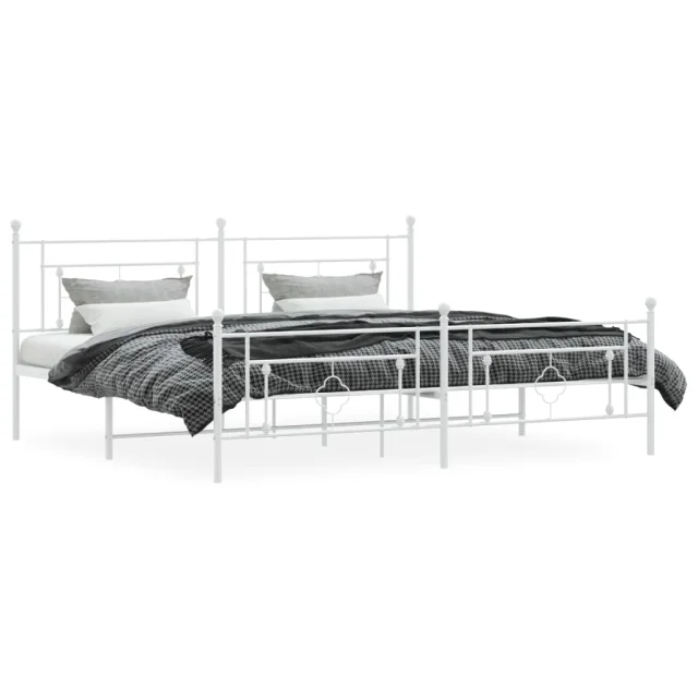 Kovinski Posteljni okvir - Dvoposteljna postelja - Zakonska postelja z vzglavjem in vznožjem bel 193x203 cm