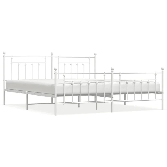 Kovinski Posteljni okvir - Dvoposteljna postelja - Zakonska postelja z vzglavjem in vznožjem bel 193x203 cm