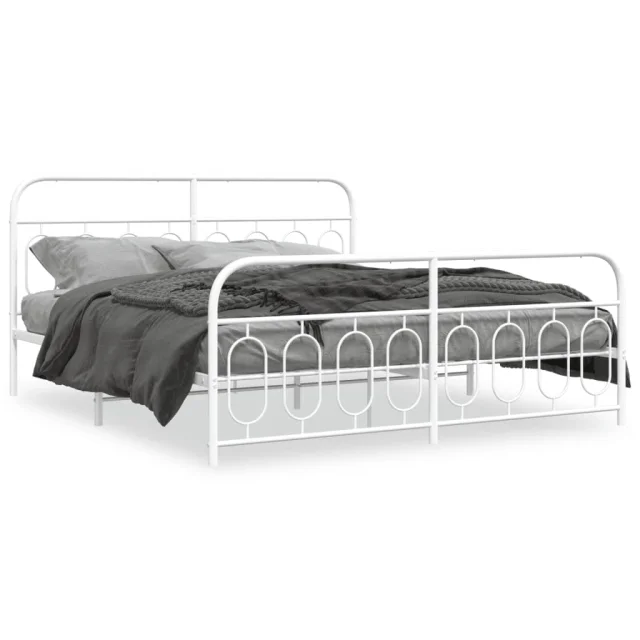 Kovinski Posteljni okvir - Dvoposteljna postelja - Zakonska postelja z vzglavjem in vznožjem bel 193x203 cm