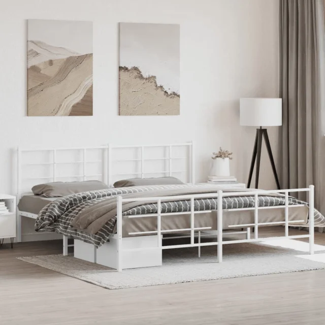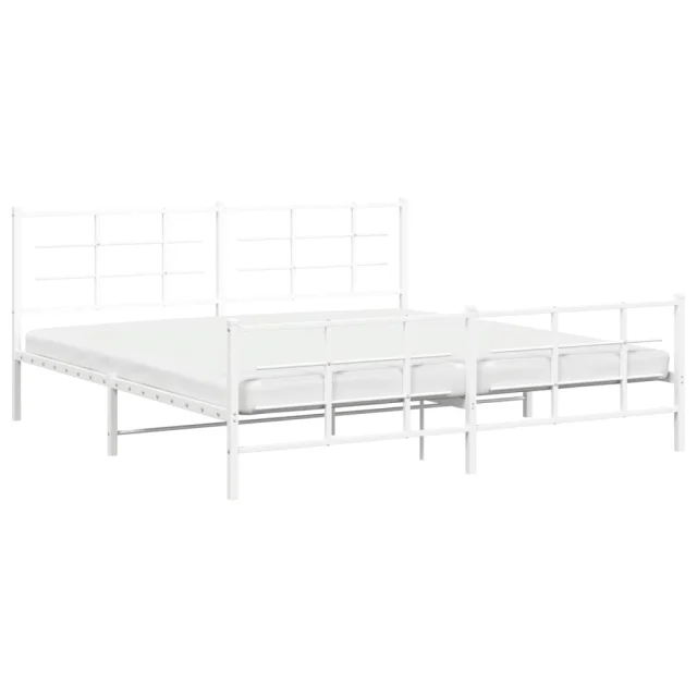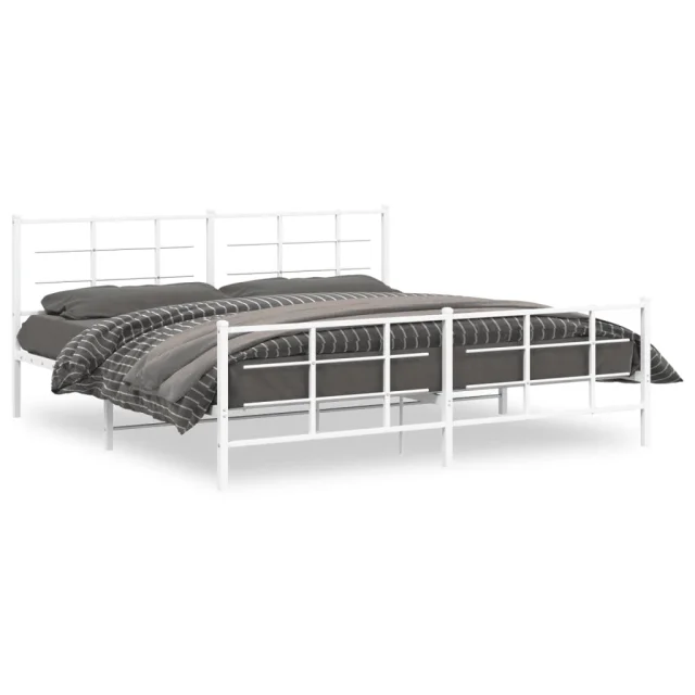 Kovinski Posteljni okvir - Dvoposteljna postelja - Zakonska postelja z vzglavjem in vznožjem bel 193x203 cm