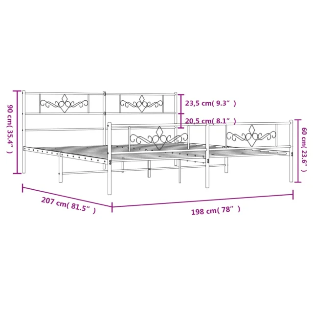 Kovinski Posteljni okvir - Dvoposteljna postelja - Zakonska postelja z vzglavjem in vznožjem bel 193x203 cm