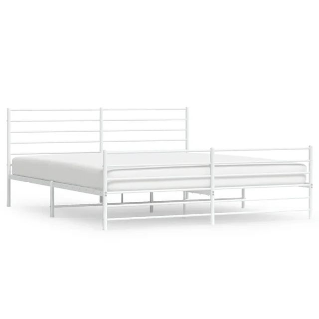 Kovinski Posteljni okvir - Dvoposteljna postelja - Zakonska postelja z vzglavjem in vznožjem bel 200x200 cm