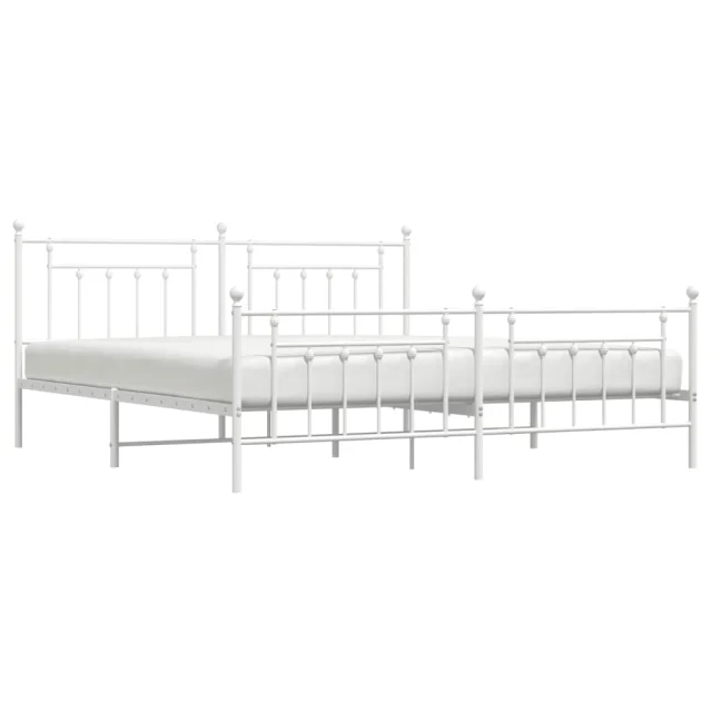 Kovinski Posteljni okvir - Dvoposteljna postelja - Zakonska postelja z vzglavjem in vznožjem bel 200x200 cm