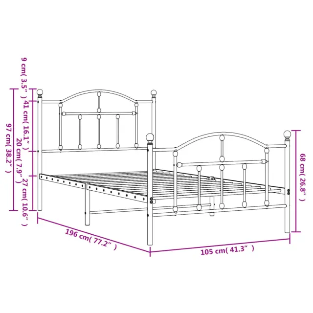 Kovinski Posteljni okvir - Dvoposteljna postelja - Zakonska postelja z vzglavjem in vznožjem črn 100x190 cm