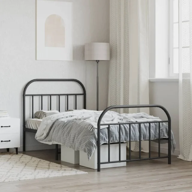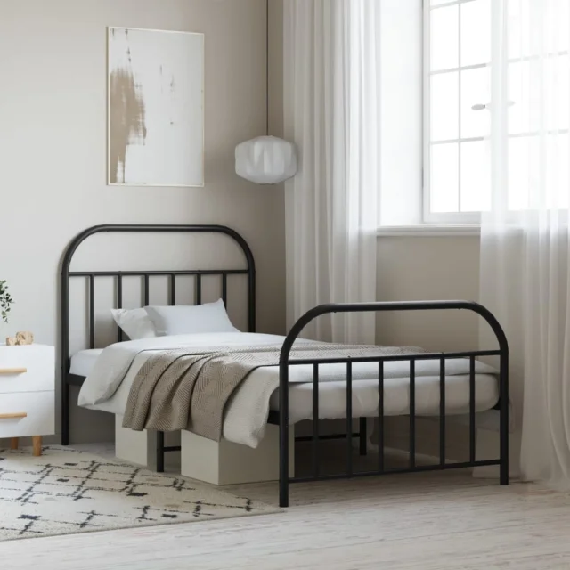 Kovinski Posteljni okvir - Dvoposteljna postelja - Zakonska postelja z vzglavjem in vznožjem črn 107x203 cm