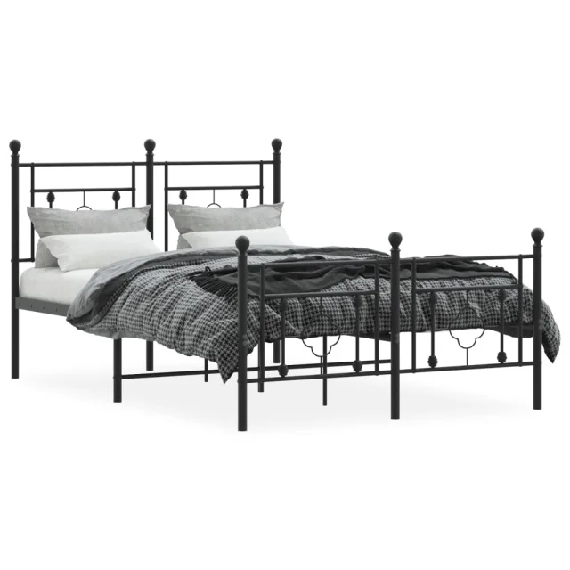 Kovinski Posteljni okvir - Dvoposteljna postelja - Zakonska postelja z vzglavjem in vznožjem črn 120x190 cm