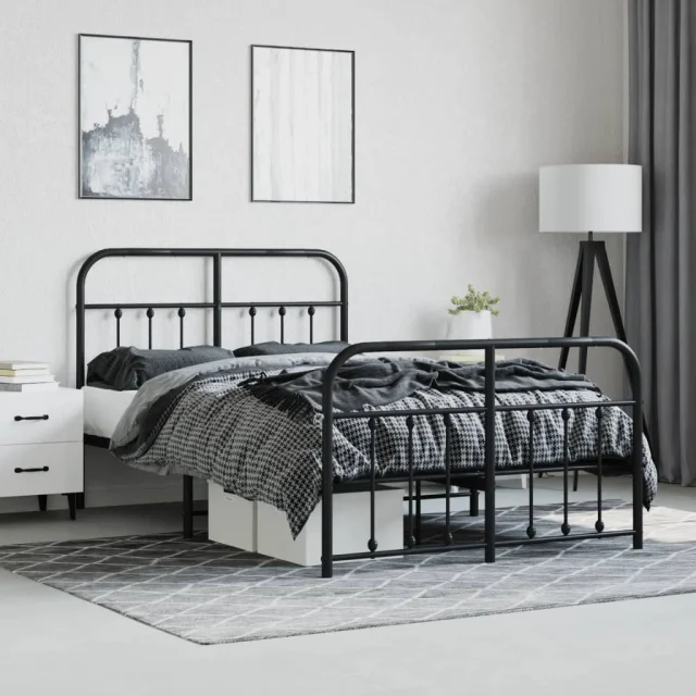 Kovinski Posteljni okvir - Dvoposteljna postelja - Zakonska postelja z vzglavjem in vznožjem črn 120x190 cm