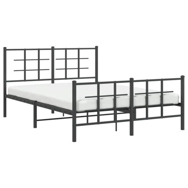 Kovinski Posteljni okvir - Dvoposteljna postelja - Zakonska postelja z vzglavjem in vznožjem črn 135x190 cm