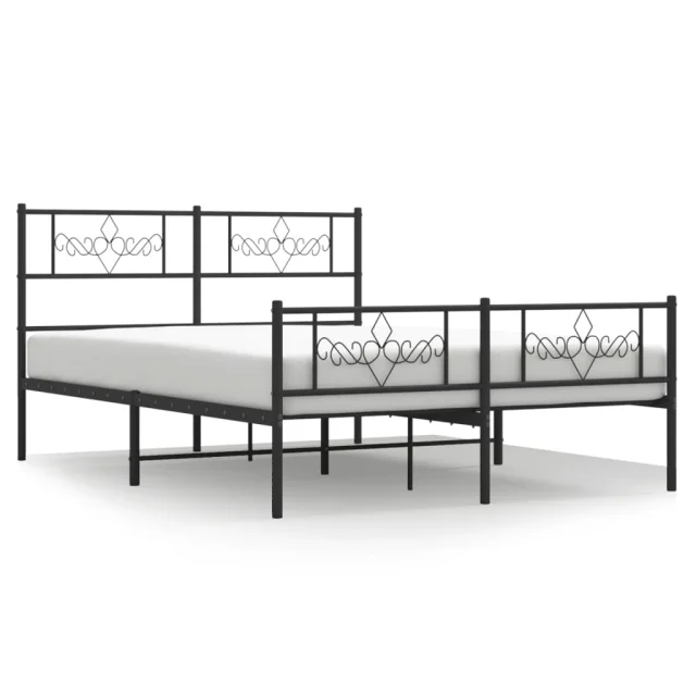 Kovinski Posteljni okvir - Dvoposteljna postelja - Zakonska postelja z vzglavjem in vznožjem črn 135x190 cm