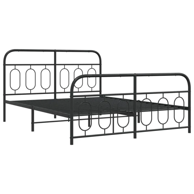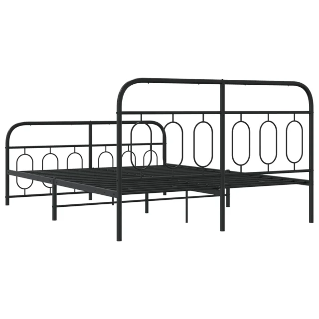 Kovinski Posteljni okvir - Dvoposteljna postelja - Zakonska postelja z vzglavjem in vznožjem črn 135x190 cm