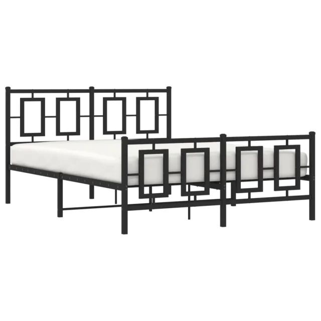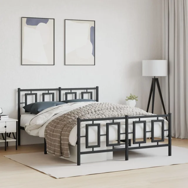 Kovinski Posteljni okvir - Dvoposteljna postelja - Zakonska postelja z vzglavjem in vznožjem črn 135x190 cm