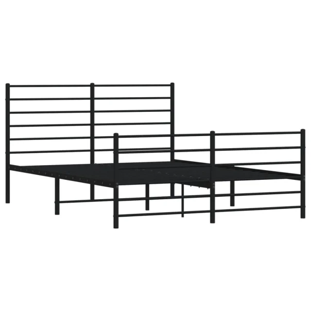 Kovinski Posteljni okvir - Dvoposteljna postelja - Zakonska postelja z vzglavjem in vznožjem črn 135x190 cm