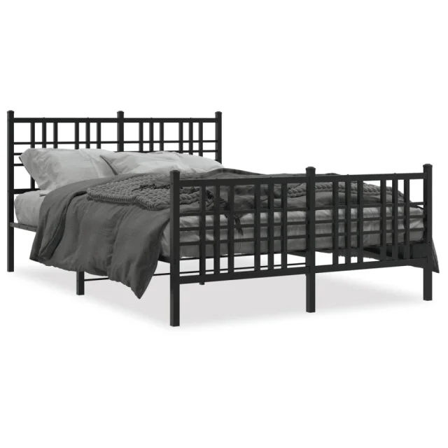 Kovinski Posteljni okvir - Dvoposteljna postelja - Zakonska postelja z vzglavjem in vznožjem črn 137x190 cm