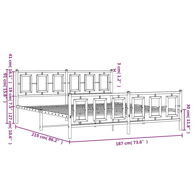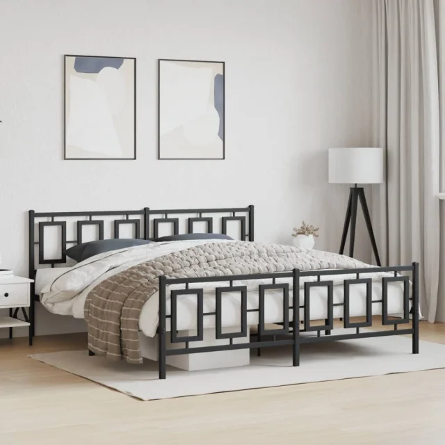 Kovinski Posteljni okvir - Dvoposteljna postelja - Zakonska postelja z vzglavjem in vznožjem črn 183x213 cm