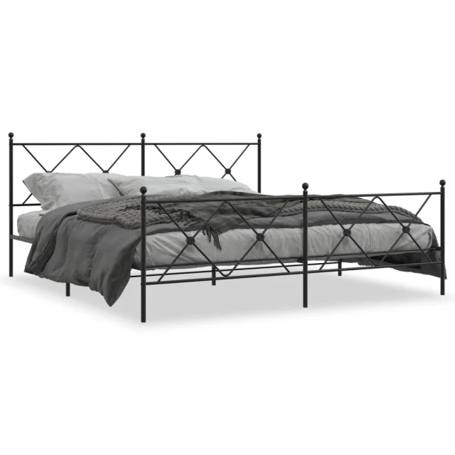 Kovinski Posteljni okvir - Dvoposteljna postelja - Zakonska postelja z vzglavjem in vznožjem črn 183x213 cm