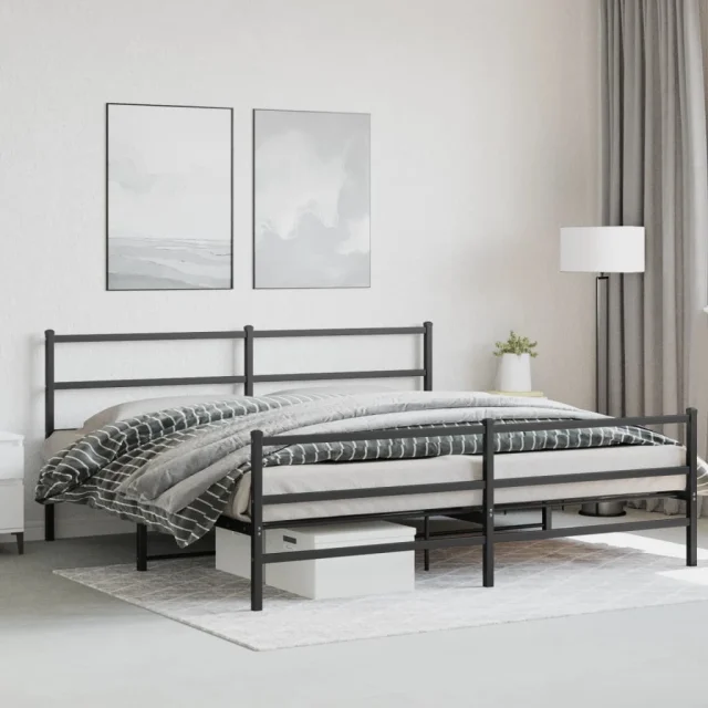 Kovinski Posteljni okvir - Dvoposteljna postelja - Zakonska postelja z vzglavjem in vznožjem črn 183x213 cm