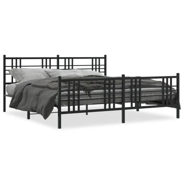 Kovinski Posteljni okvir - Dvoposteljna postelja - Zakonska postelja z vzglavjem in vznožjem črn 183x213 cm