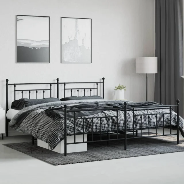 Kovinski Posteljni okvir - Dvoposteljna postelja - Zakonska postelja z vzglavjem in vznožjem črn 193x203 cm