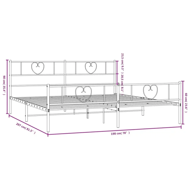 Kovinski Posteljni okvir - Dvoposteljna postelja - Zakonska postelja z vzglavjem in vznožjem črn 193x203 cm