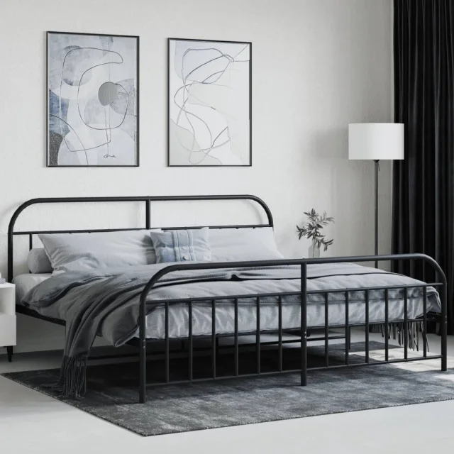 Kovinski Posteljni okvir - Dvoposteljna postelja - Zakonska postelja z vzglavjem in vznožjem črn 193x203 cm