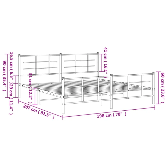 Kovinski Posteljni okvir - Dvoposteljna postelja - Zakonska postelja z vzglavjem in vznožjem črn 193x203 cm