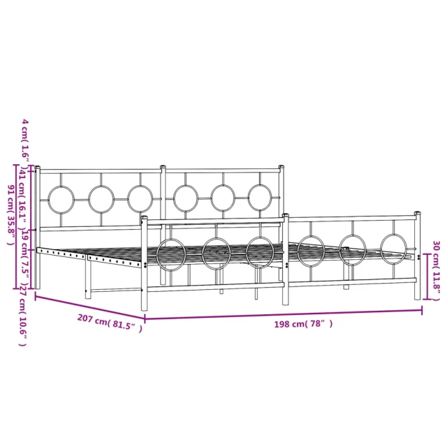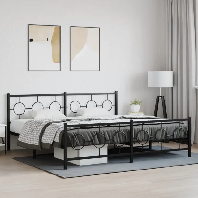 Kovinski Posteljni okvir - Dvoposteljna postelja - Zakonska postelja z vzglavjem in vznožjem črn 193x203 cm