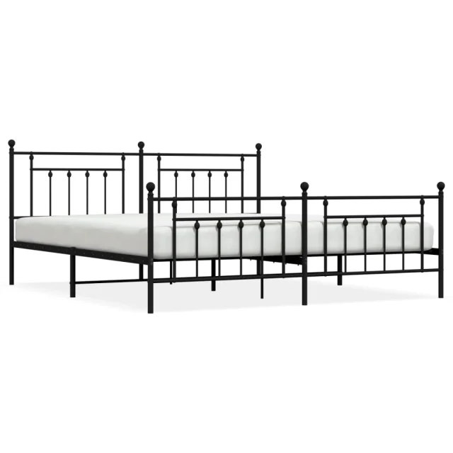 Kovinski Posteljni okvir - Dvoposteljna postelja - Zakonska postelja z vzglavjem in vznožjem črn 200x200 cm