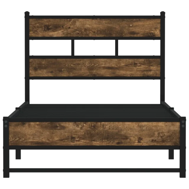 Kovinski Posteljni okvir - Enojna postelja - Postelja za odrasle brez vzmetnice dimljen hrast 80x200 cm