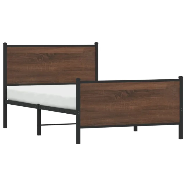 Kovinski Posteljni okvir - Enojna postelja - Postelja za odrasle brez vzmetnice rjavi hrast 100x200 cm