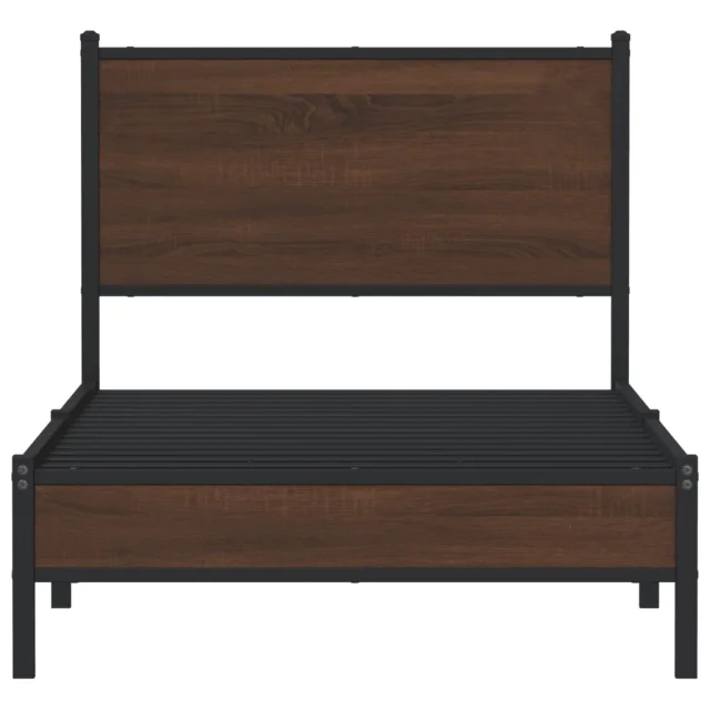 Kovinski Posteljni okvir - Enojna postelja - Postelja za odrasle brez vzmetnice rjavi hrast 90x190 cm