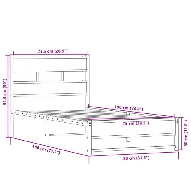 Kovinski Posteljni okvir - Enojna postelja - Postelja za odrasle brez vzmetnice sonoma hrast 75x190 cm
