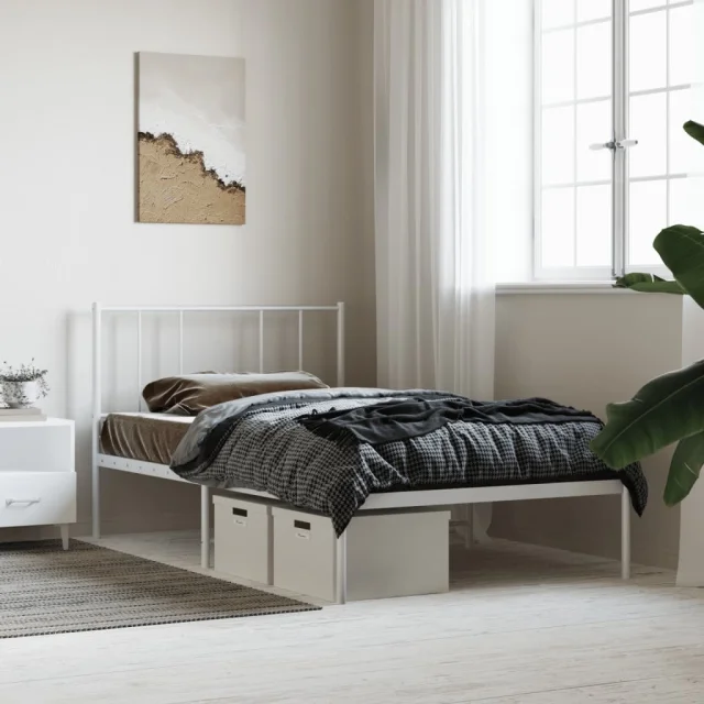 Kovinski Posteljni okvir - Enojna postelja - Postelja za odrasle z vzglavjem bel 80x200 cm
