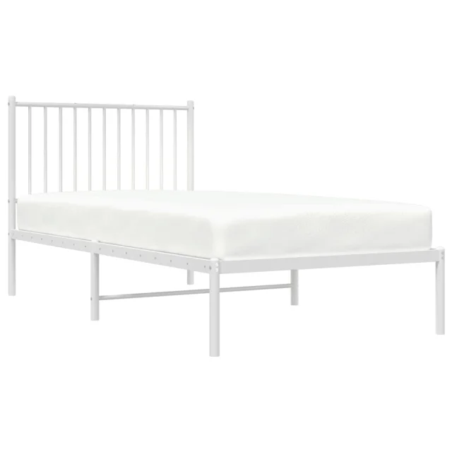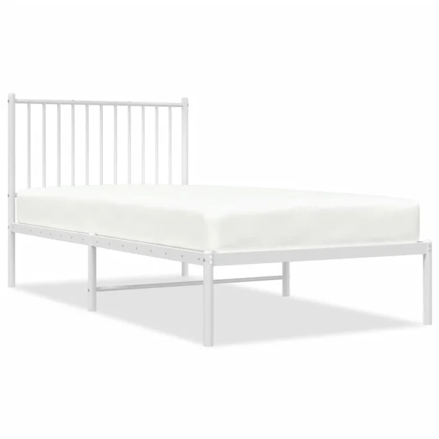 Kovinski Posteljni okvir - Enojna postelja - Postelja za odrasle z vzglavjem bel 90x190 cm