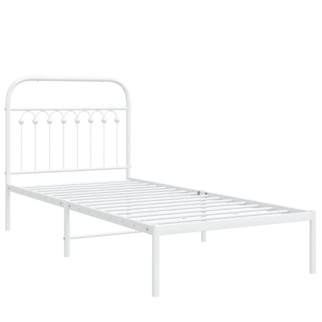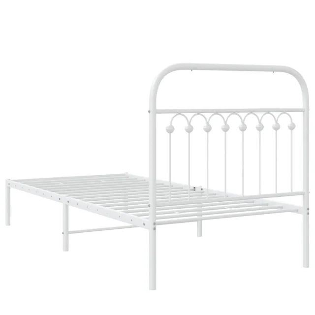 Kovinski Posteljni okvir - Enojna postelja - Postelja za odrasle z vzglavjem bel 90x190 cm