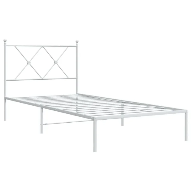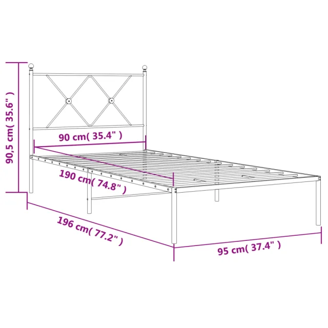 Kovinski Posteljni okvir - Enojna postelja - Postelja za odrasle z vzglavjem bel 90x190 cm