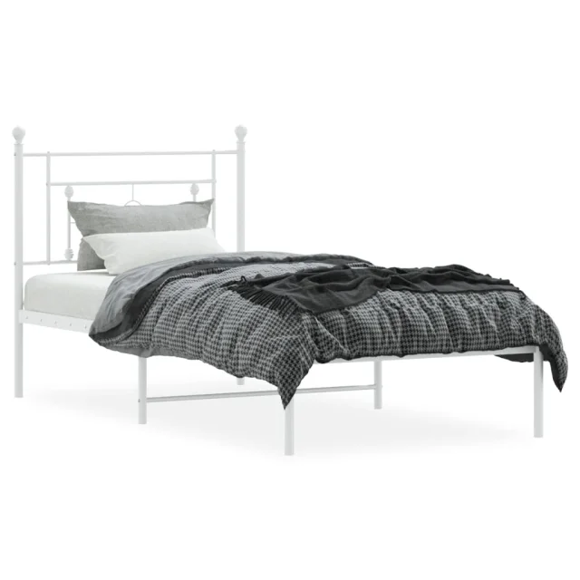 Kovinski Posteljni okvir - Enojna postelja - Postelja za odrasle z vzglavjem bel 90x200 cm