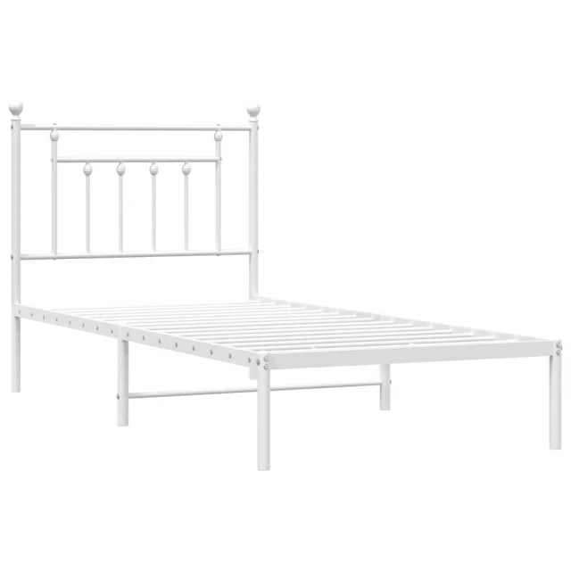 Kovinski Posteljni okvir - Enojna postelja - Postelja za odrasle z vzglavjem bel 90x200 cm
